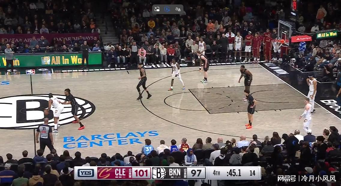 比赛还剩下45秒时,骑士发动进攻。裁判报告指出,篮网中锋夏普在身边一米范围内没有明确防守人的情况下在禁区待的时间过久,应该吹罚防守三秒违例,骑士得到一次罚球机会。